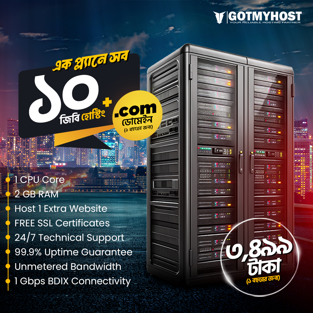 একসাথে পাচ্ছেন ১০ জিবি হোস্টিং + ১ বছরের জন্য .COM ডোমেইন, সবকিছু মাত্র ৩৪৯৯ টাকা!