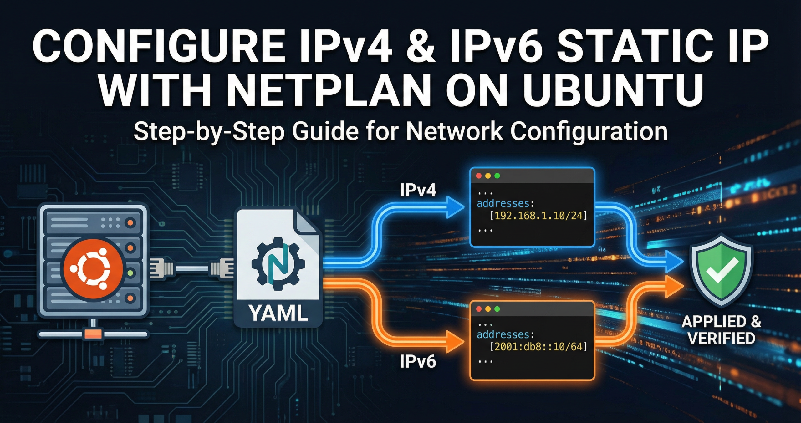 - Creating a Netplan configuration for static IPv4 and IPv6